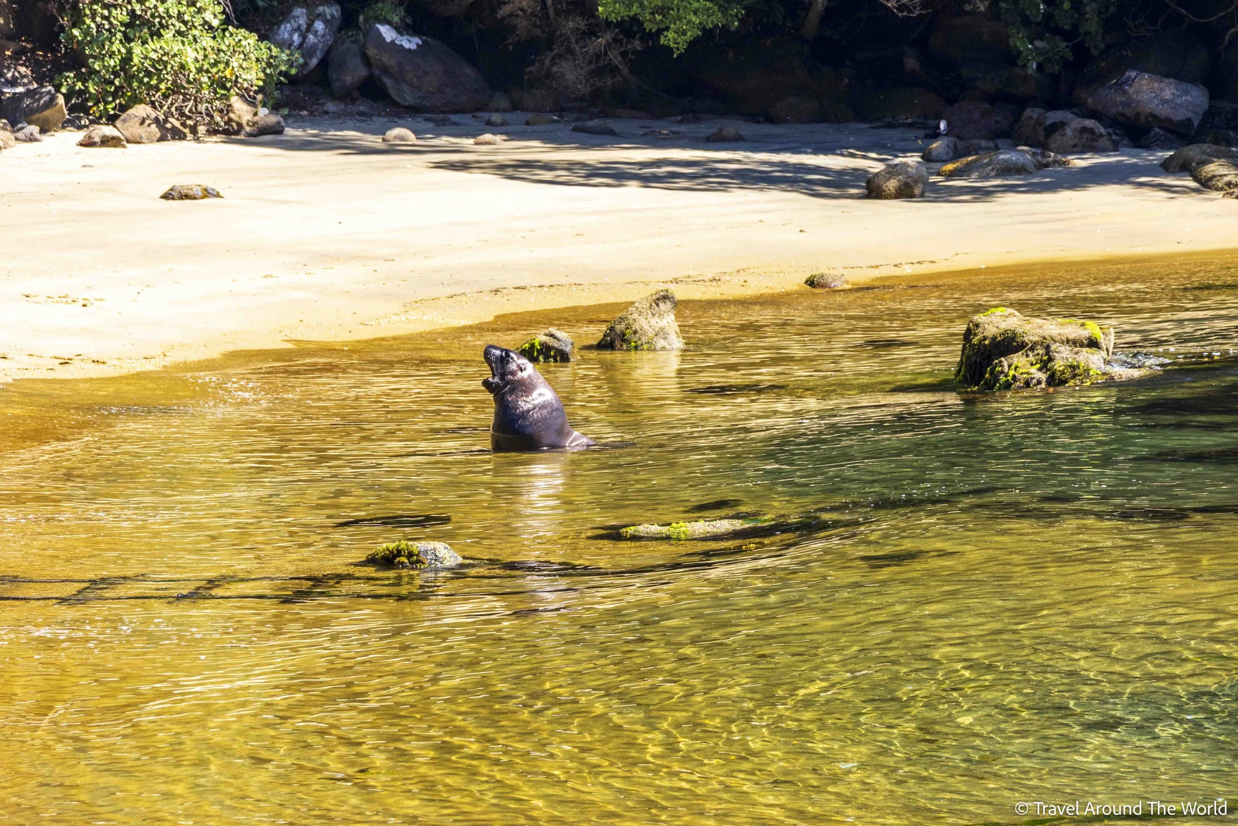 Da wir mit dem Morgenflug nach Stewart Island gekommen sind und wir erst am Folgetag mit der Wanderung starten, bleibt uns noch fast ein ganzer Tag für eine Erkundungstour. Wir nehmen ein Wassertaxi nach Ulva Island. Dort leben viele seltene Vögel in einer «raubtierfreien» Umgebung (keine Ratten, Wiesel, etc.) und auch das umliegende Meer ist bei Meeresbewohnern aufgrund seines Nahrungsreichtums beliebt. Bereits am Pier auf Stewart Island kommt ein Seehund vorbei und präsentiert uns stolz seinen gefangenen Fisch, den er dann genüsslich vor uns verspeist. Kaum auf Ulva Island angekommen, kommt erneut ein Seehund in die Bucht geschwommen und markiert seine Präsenz. Auf ein paar Wanderwegen kann man die kleine Insel erkunden. Immer wieder trifft man auf Vögel, die man aus nächster Nähe beobachten kann. Ein äussertes friedlicher Ort!