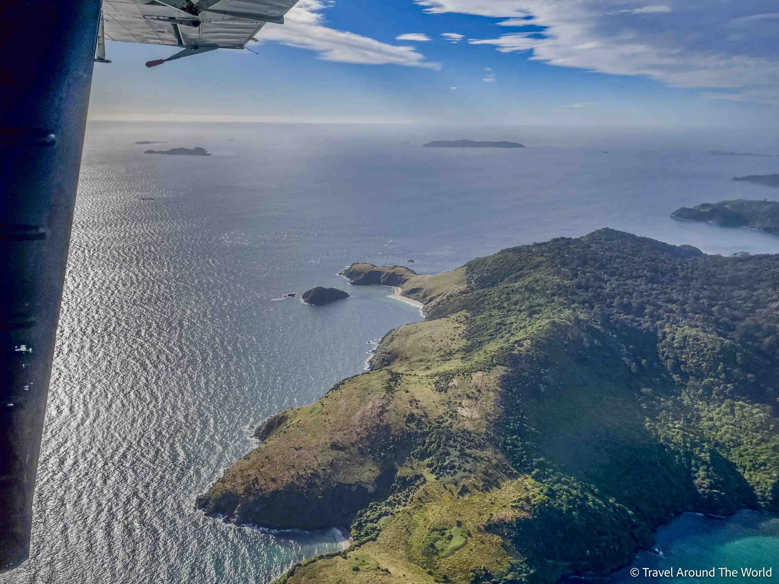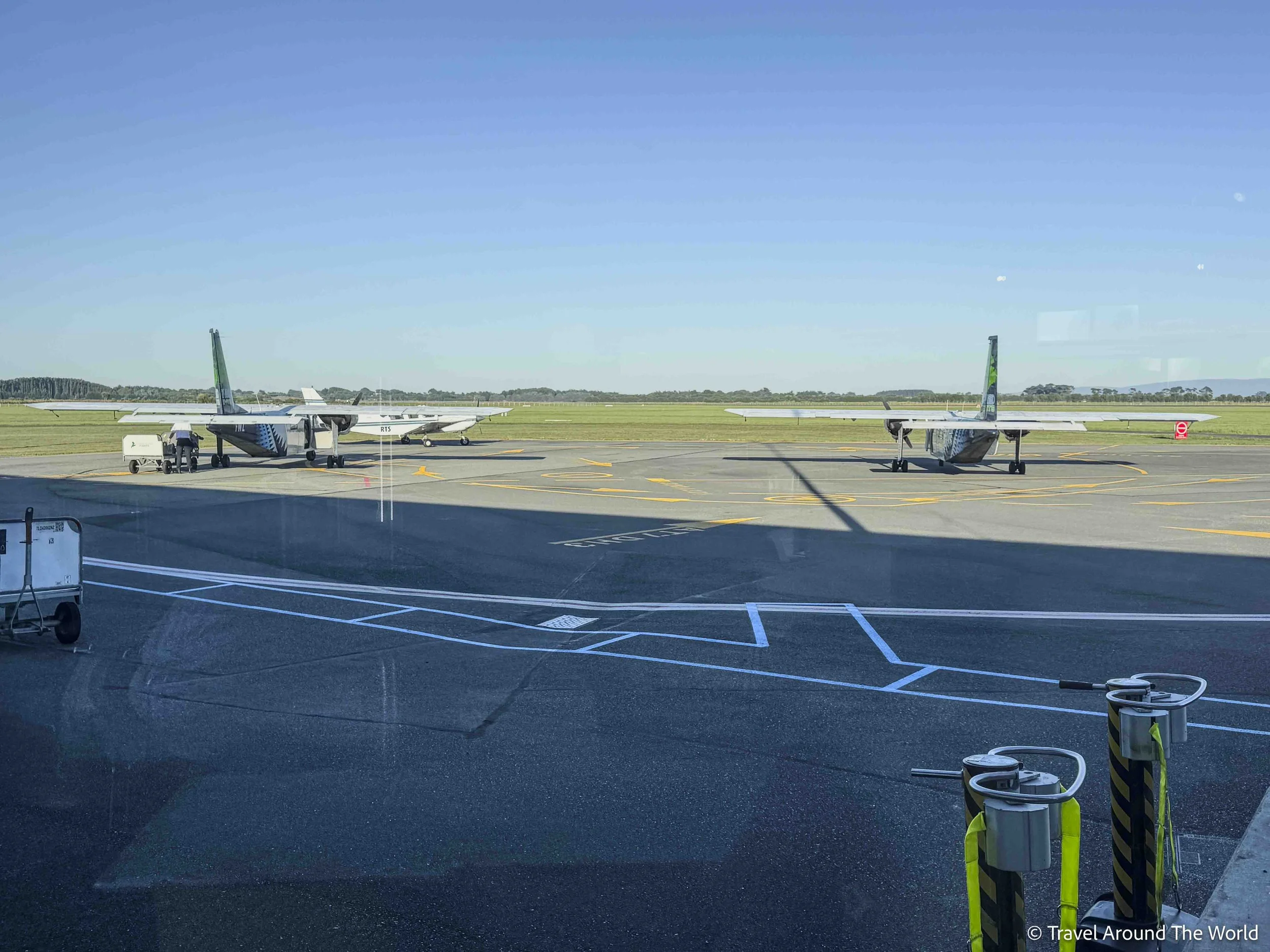 Bei diesem Track war das Gesamterlebnis einfach toll. Der Rakiura Track befindet sich auf Stewart Island. Stewart Island wiederum ist eine rund 30 km südlich von der Südinsel Neuseelands vorgelagerte Insel. Auf die Insel gelangt man entweder auf einer knapp einstündigen Fährfahrt durch die – oftmals sehr raue – Meeresenge Foveaux-Strait oder aber auf einem 20-minütigen Flug in einem Kleinflugzeug. Da beide Varianten preislich sehr nahe beieinanderliegen, war für uns schnell klar, für welche Option wir uns entscheiden… Der Flughafen von Invercargill ist sehr überschaubar (5 Gates, vier davon gehen durch ein- und dieselbe Türe). Zwei Flieger sind fast zeitgleich nach Stewart Island geflogen (Gruppe «grün» und Gruppe «blau»). Wir gehörten zu den neun Personen aus Gruppe «grün». Mit dem Piloten läuft man ganz entspannt auf’s Rollfeld, hinter den Passagieren wird das Gepäck verstaut und nach einer kurzen Sicherheitsinstruktion geht es auch schon los. Die Propellermaschine bringt uns in gerade mal 20 Minuten auf die Insel. Die Aussicht ist spektakulär!