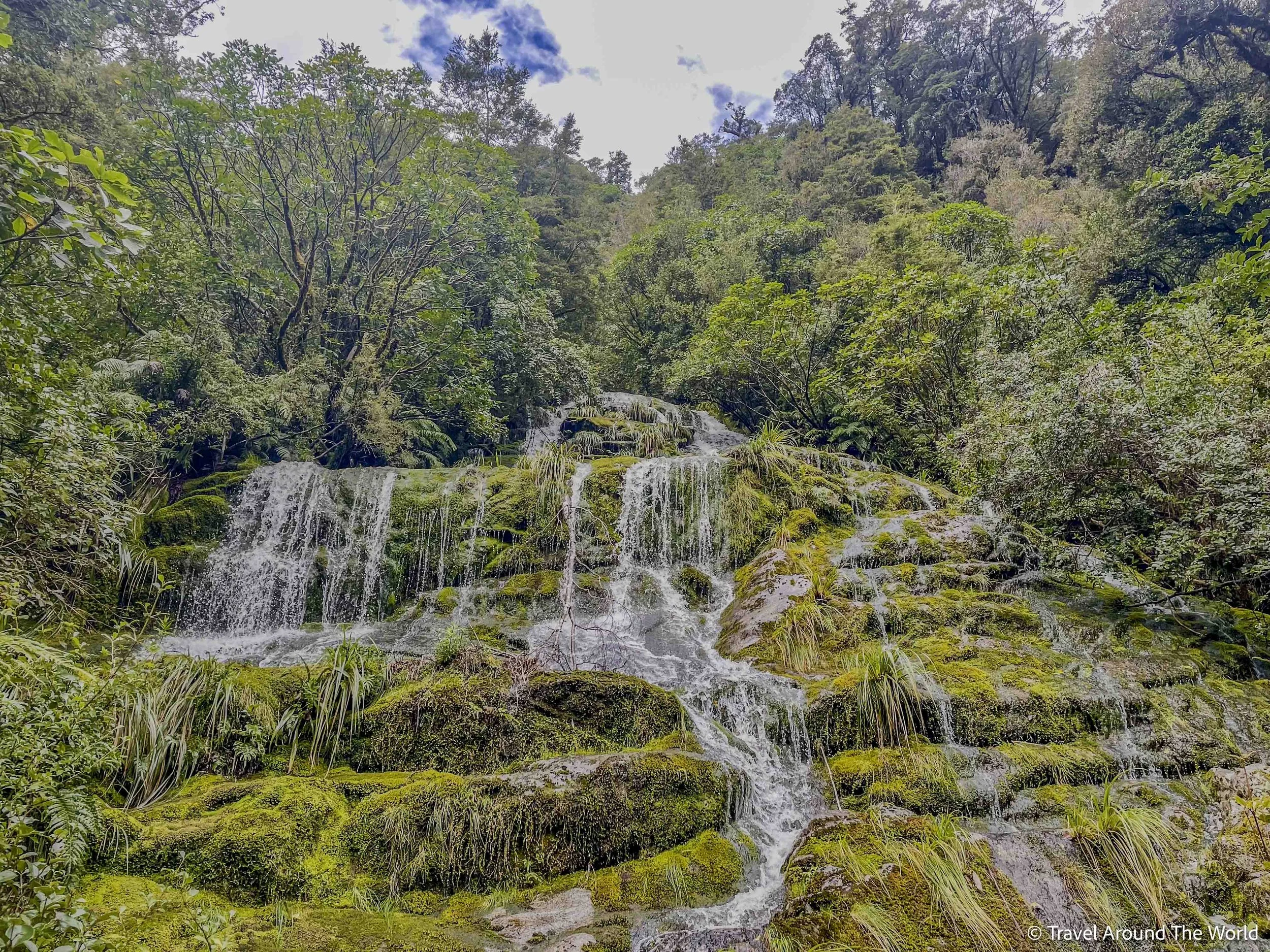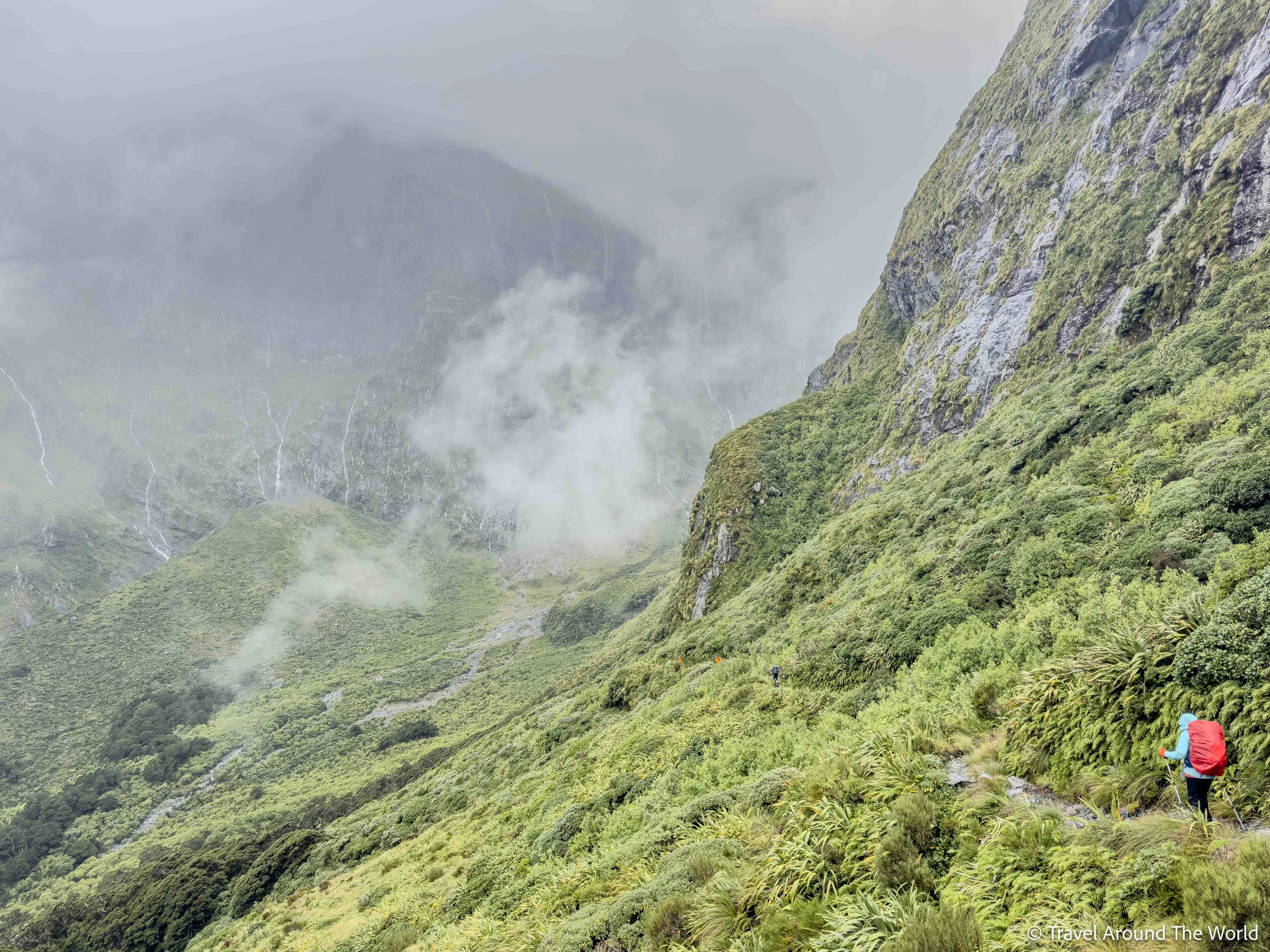 Der Regen hat es wirklich gut mit uns gemeint. Wenn es regnete, dann fast immer in der Nacht und dies auch nicht sintflutartig (die Wanderwege waren weder geflutet noch matschig). Einzig am dritten Tag hatten wir bei der Passüberquerung etwas Pech. Nebel zog herein, die schöne Aussicht mussten wir uns vorstellen, es fiel dann doch noch so viel Regen, dass es sich lohnte, in die Regenkleider zu steigen. Aber alles in allem waren die Regenfälle harmlos und das Wetter um Welten besser als vorausgesagt. Denn mit dem (Regen)Wetter ist in Fiordland nun wirklich nicht zu spassen: Im Schnitt regnet es an zwei von drei Tagen und pro Jahr fallen 10'000 mm / 10 Meter (!) Regen (als Vergleich: in Zürich fiel im Jahr 2024 gerade mal etwa 1'300 mm Niederschlag, im Jahr 2022 war es sogar nur etwa 870 mm). Wir können uns somit wirklich nicht beschweren. Die nächtlichen Regenfälle haben dazu geführt, dass zahlreiche kleine Wasserfälle von den Berghängen flossen.