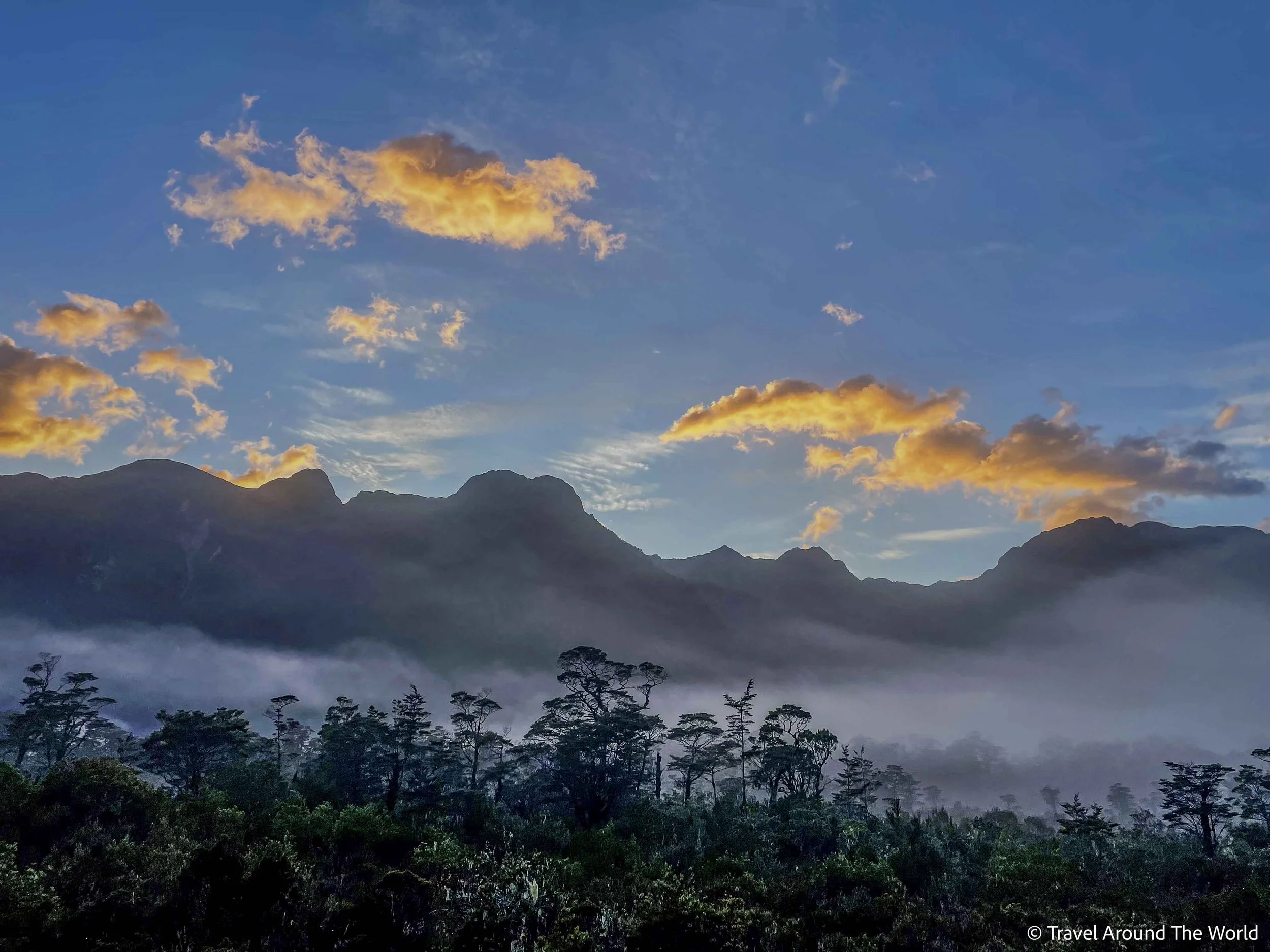 Der erste «Wandertag» ist eigentlich ein Witz. Man wandert gerade mal etwas über eine Stunde zur ersten Hütte (wo man ja dann für NZD 120.- übernachten MUSS). So waren wir bereits gegen 13 Uhr in der Hütte. Unsere Beine waren sicher dankbar für den kurzen ersten Tag und kaum waren wir in der Hütte angekommen, sind auch bereits die ersten Regentropfen gefallen… Der Regen war auf diesem Track ein Punkt, der uns auf dem Magen gelegen ist. Es schien, als sei unser Wander-Wetter-Glück, welches wir auf dem Rakiura Track und Kepler Track hatten, nun aufgebraucht. Die Wetterprognosen waren wirklich schlecht. An allen vier Tagen war Regen prognostiziert. Wir haben uns schon überlegt, ob wir unter diesen Bedingungen die Wanderung wirklich machen möchten. Eigentlich ein klares «Nein!» – wer findet die Vorstellung schon toll vier Tage durch den Regen zu latschen? Drei Punkte hielten uns davon ab, die Tour abzusagen: Erstens hat uns dieser Track einfach zu viel gekostet (Hüttenübernachtungen plus Shuttleservice plus wären dann ja noch zusätzliche Kosten für Ersatzübernachtungen in einem Hotel dazugekommen), zweitens hat sich auf dem Kepler Track gezeigt, dass sich das Wetter – wie es halt so ist in den Bergen – schnell komplett ändern kann. Also haben wir ganz ganz fest gehofft, dass sich all die prognostizierten Regenfälle, und Wolken und schlechte Sicht in trockenes Wanderwetter verwandeln würde. Drittens haben wir zuhause eine zuverlässige Quelle, die erfolgreich Sonnentänze absolviert (danke für deinen Einsatz, Linda!).