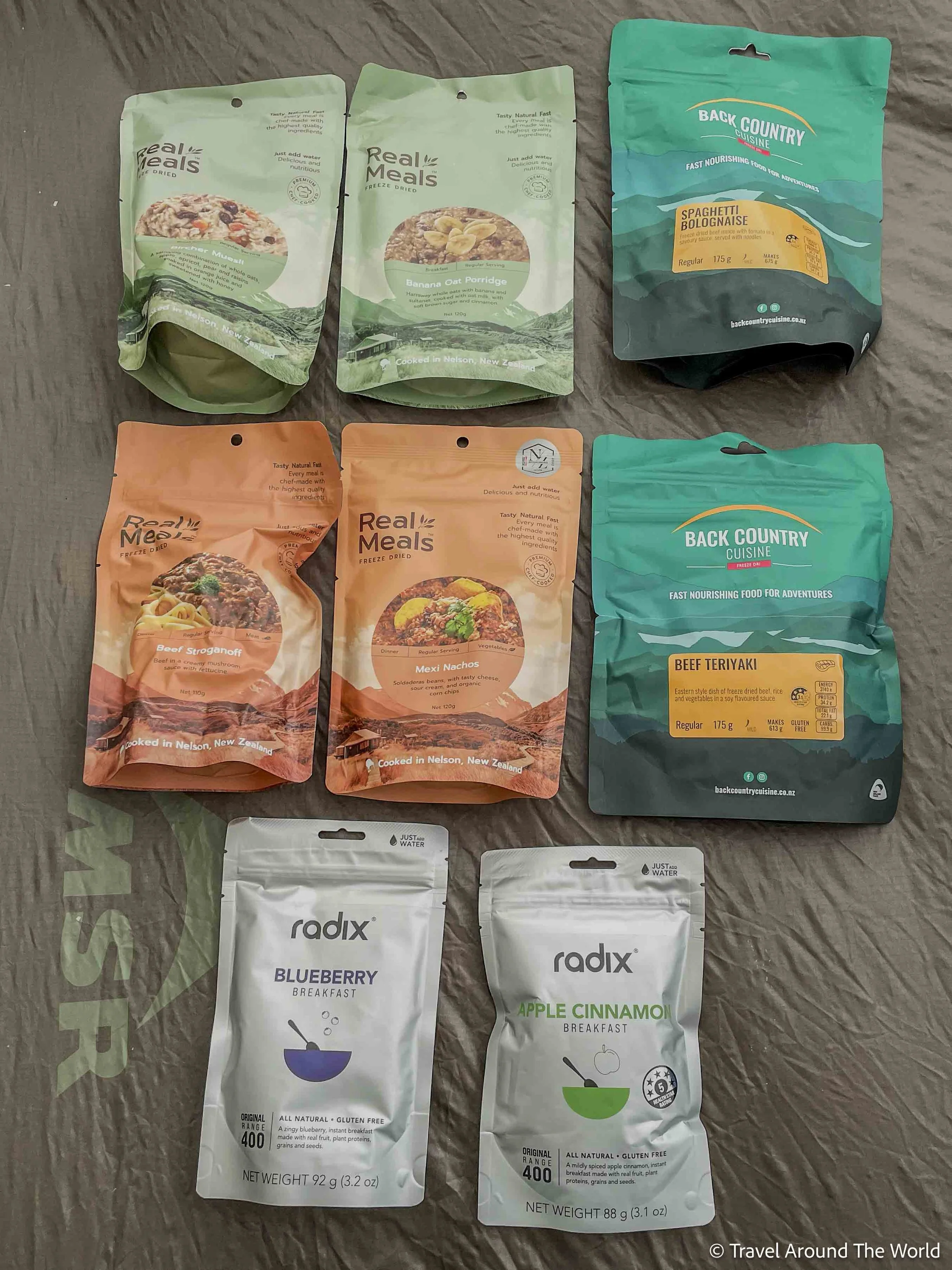 Ein spannendes Thema auf Mehrtageswanderungen in Selbstversorgungshütten ist die Verpflegung. Man ist hin- und hergerissen zwischen leckeren, frischen Menüs (die jedoch häufig schwere Zutaten beinhalten) und dem leichten und praktischen Trekkingfood (gefrier-getrocknete Fertigmenüs, die nur noch mit Heisswasser angerührt werden müssen) und aber leider nie so richtig gut schmeckt. Wir haben jeweils einen Kompromiss gemacht: für die erste Nacht haben wir jeweils etwas feines mitgebracht (so mussten wir die schweren Zutaten nur am ersten Tag tragen) und für die weiteren Tage klassischen Trekkingfood eingepackt. Unser «feines, frisches und schweres» Menü bestand aus Teigwaren (möglichst kurze Kochzeit!), einer Pestosauce (vom schweren Glas in einen leichten Frischhaltebeutel abgefüllt) sowie frischen Cherry-Tomaten. Auch zum Frühstück haben wir uns meistens für die praktischen Trekkingfood-Tüten entschieden und nur ein einziges Mal Pumpernickel-Brot mit Nutella mitgebracht (das haben wir uns auf dem Rakiura Track von dem französischen Paar abgeschaut). Snacks und Mittagessen bestand aus Nüssen, Riegeln, gedörrten Früchten und Quick-Noodle-Soups. Ein Hoch auf die Quick-Noodle-Soups! Wir sind richtig stolz auf diese «Entdeckung». Morgens haben wir jeweils unsere Thermosflasche mit kochendem Wasser aufgefüllt, welches wir zur Mittagszeit in unsere Nudelbecher füllen konnten. Bloss noch das Gewürz-Sachet beifügen, drei Minuten ziehen lassen und fertig ist eine nahrhafte, wärmende und salzspendende Mahlzeit. Gleichzeitig nimmt man noch etwas zusätzliche Flüssigkeit durch die Bouillon zu sich. Nicht nur leicht in der Zubereitung, sondern auch leicht mitzutragen (der einzige Minuspunkt ist die etwas voluminöse Verpackung, die viel Platz im Rucksack einnimmt). Unsere Belohnung war jeweils ein Pack Pringles (ebenfalls von den Franzosen abgekupfert :-)), welches wir uns akribisch auf die Anzahl Wandertage aufgeteilt haben. Pringles schmecken uns nicht nur sehr, sondern sind durch ihre Verpackung auch noch bestens geschützt, sodass man wirklich die Chips und nicht bloss «Brösmeli» geniessen kann. Tja, viel mehr gibt es zur Verpflegung nicht mehr zu sagen. Wir hatten auf allen Wanderungen in etwa dasselbe dabei, wobei wir bei den Trekkingmenüs jeweils darauf geachtet haben, dass wir verschiedene Menüs dabeihatten (damit man sich notfalls mal durch eine Mahlzeit kämpfen muss und dann sein Glück am nächsten Tag mit einem anderen Menü versuchen kann). Nebst dem Essen spielt das Trinken natürlich eine wichtige Rolle. Wasser gibt es auf den Great Walks in allen Hütten. Meistens ist das Wasser ziemlich sauber, da es aber nicht behandelt oder gefiltert wird, hängen überall Hinweistafeln, dass man das Wasser entweder abkochen, filtern oder mit speziellen Tabletten behandeln soll. Die Ranger/innen und auch viele Wanderer haben das Wasser unbehandelt direkt aus dem Hahn getrunken. Wir sind in diesem Bezug immer lieber übervorsichtig, da wir absolut keine Lust auf Bauchschmerzen oder Dünnpfiff auf Wanderungen haben. Somit haben wir jeweils Unmengen an Wasser gekocht: 0.6L für unseren allmorgendlichen Tee, 0.5L für die Thermosflasche (Stichwort Quick-Noodle-Soup), 4-5L Trinkwasser für die nächste Wanderetappe, ca. 0.5L für die Frühstücksmenüs und nochmals ca. 0.8L für’s Abendessen. Beim Schreiben dieser Zahlen fragen wir uns jetzt auch gerade, warum wir nicht einfach unseren Wasserfilter oder die Tabletten benutzt haben… Da wir für unsere Mahlzeiten aber sowieso Wasser abkochen mussten und wir sonst nicht viel zu tun hatten, war das Abkochen keine grosse Sache. Man merkt, dass wir nicht mehr im Arbeitsalltag gefangen sind, wo jeder Handgriff und jede Tätigkeit möglichst effizient sein muss ;-)
