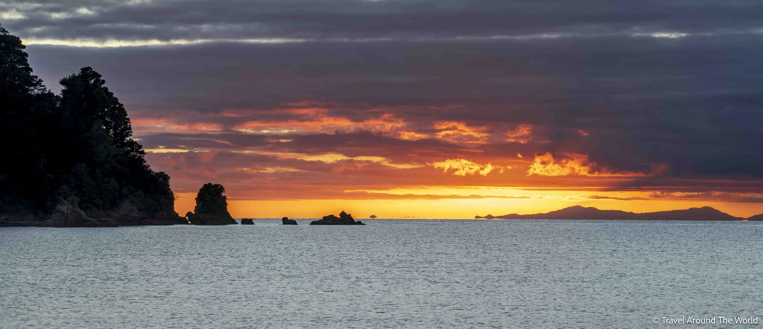 Der ursprüngliche Plan wäre gewesen, nach unserer Rückkehr mit dem Wohnmobil in den nördlichen Teil des Abel Tasman National Parks zu fahren und dort nochmals eine schöne Tageswanderung (und somit eine weitere Teiletappe des Abel Tasman Tracks) zu machen. Tatsächlich sind wir den weiten Weg über eine enge Passstrasse bis zum besagten Campingplatz nur gefahren, um uns dann kaum vom Camper wegzubewegen. Lediglich für den Sonnenauf- und untergang sind wir kurz die paar Meter ans Meer «gestürchelt». Ansonsten haben wir einfach nur gefaulenzt – das muss schliesslich auch mal sein :-)
