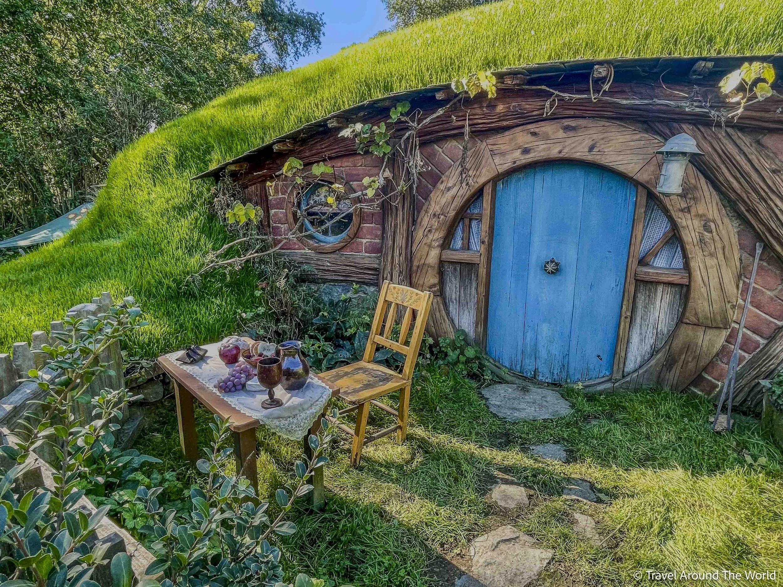 Wie dem auch sei – unser Highlight kam gegen Ende der Tour. Seit relativ neuem (Dezember 2023) gibt es zwei vollständig ausgestattete Hobbit-Höhlen, die besichtigt werden können. Im Innern finden sich zahlreiche liebevolle Details. Man könnte sicherlich Stunden darin verbringen und würde immer wieder etwas Neues entdecken. Nur schon für dieses Erlebnis hat sich die ganze – wirklich seeehr touristische – Tour gelohnt.