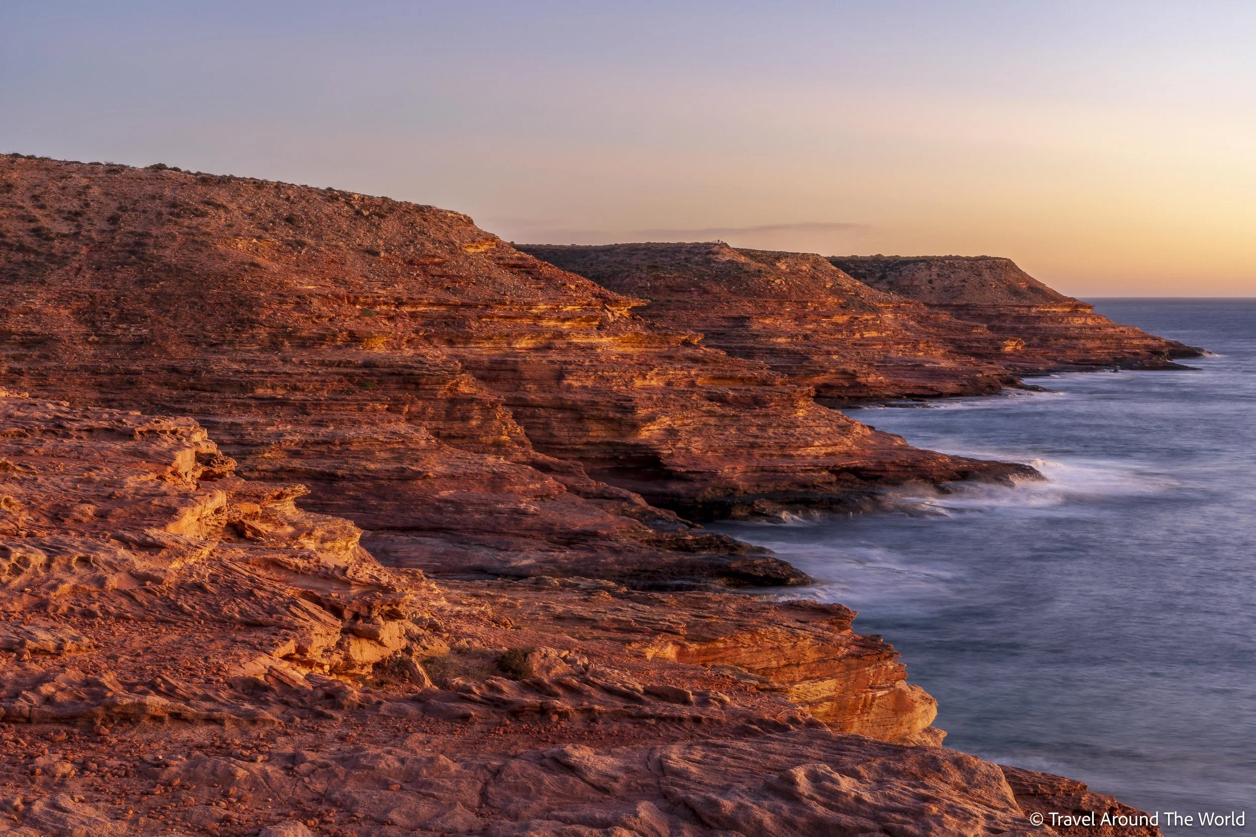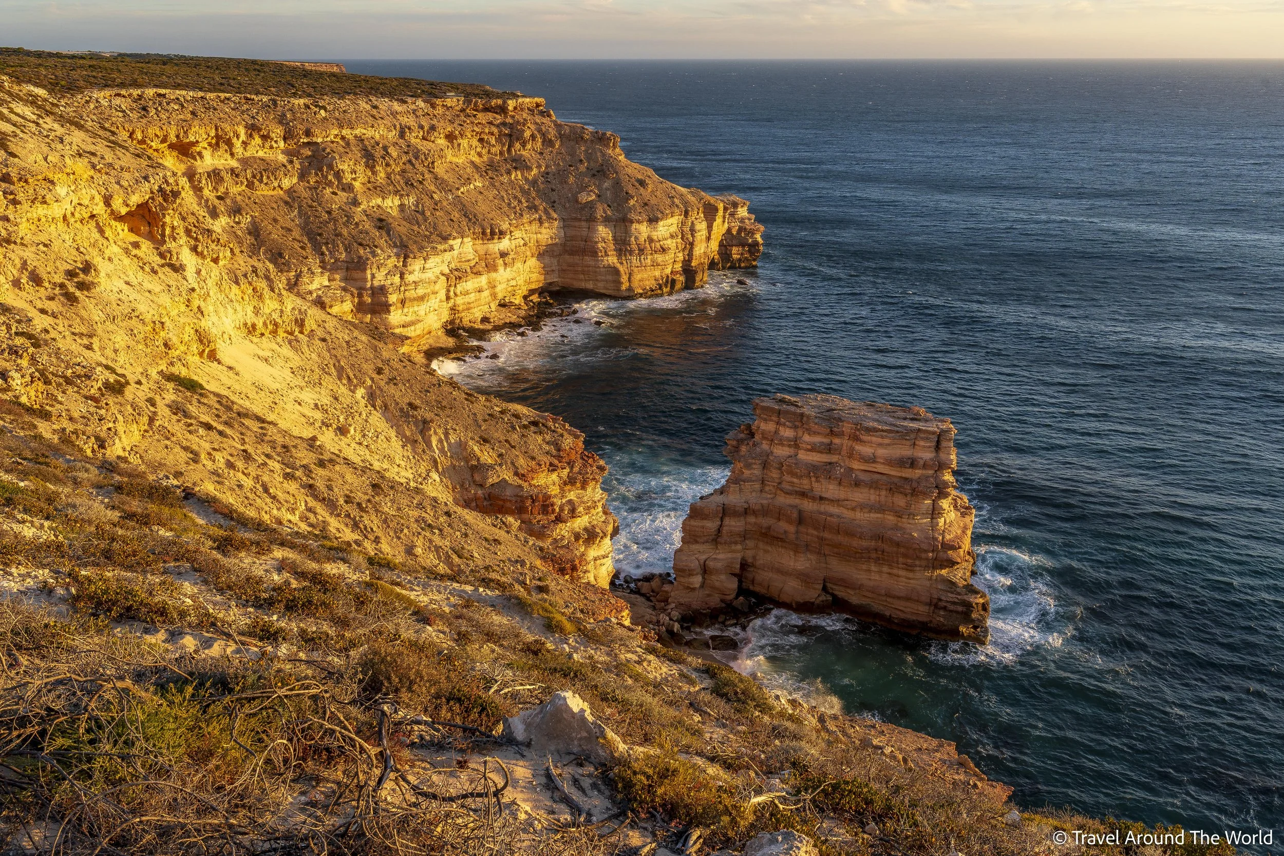 Der Kalbarri National Park besteht aus einem Küsten- und einen Inlandteil (welche ein rechtes Stück auseinander liegen). In diesem Nationalpark sind wir zum ersten Mal in den Genuss der typischen «Westküsten-Sonnenuntergänge» Australiens gekommen. Doch der «schönste» Aussichtspunkt musste erst einmal gefunden werden – gar nicht so einfach, wenn man die Qual der Wahl hat. Der Küstenteil des Nationalparks ist über einige Stichstrassen zugänglich, die von der Hauptstrasse abzweigen. Diese Stichstrassen bringen einem dann zu schönen Aussichtspunkten, wo es in vielen Fällen noch ein Spazier- oder Wanderweg gibt.