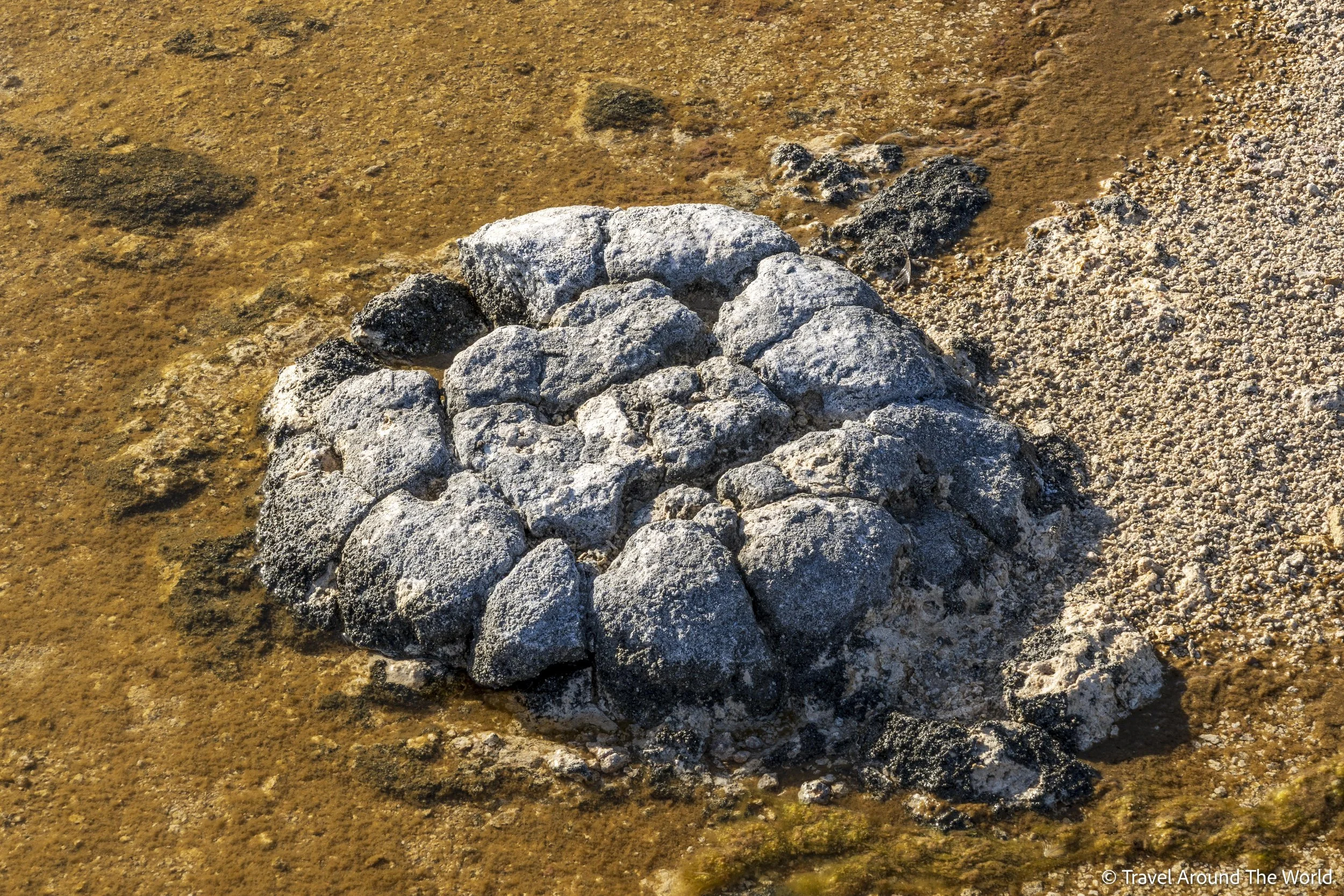 Mehr durch Zufall sind wir auf den Lake Thetis gestossen, der sich ganz in der Nähe des Nambung National Parks befindet. Der See an und für sich mag nichts Spezielles sein, doch die darin lebenden Stromatolithen sind es auf jeden Fall. Stromatolithen gehören zu den ältesten bekannten fossilen Lebewesen (ihr Alter wird auf bis zu 3.5 Milliarden Jahre geschätzt). Bei Stromatolithen handelt es sich um Kalkablagerungen von Cyanobakteria-Kolonien (Blaualgen), die in flachen Gewässern entstehen können. Googelt man Stromatolithen, so lautet ein KI-Ergebnis (einfache Erklärung): «Stromatolithen sind wie steinige Kuchen, die von winzigen Lebewesen […] gebacken werden». Zusammen mit unseren Fotos kann man sich mit dieser Beschreibung vielleicht schon ein bisschen ein besseres Bild machen :-)