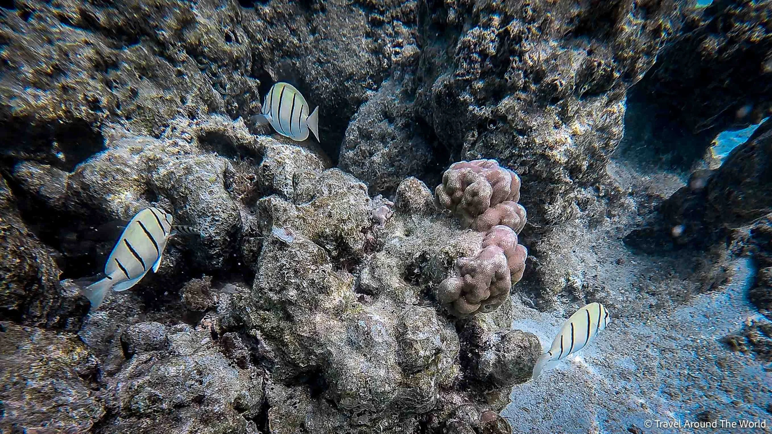 So toll die obigen Erlebnisse auch waren, den weiten Weg nach Französisch-Polynesien nimmt man nicht wegen einer adrenalingeladenen Jetski-Tour oder einer lehrreichen Inselrundfahrt auf sich. Wer hierher kommt, möchte die wundervolle Unterwasserwelt mit ihren vielfältigen, eindrücklichen und majestätischen Tieren kennenlernen. Hier liegen einige der weltweit besten Tauchgebiete und auch wer – so wie wir – «nur» schnorcheln kann, wird nicht enttäuscht.