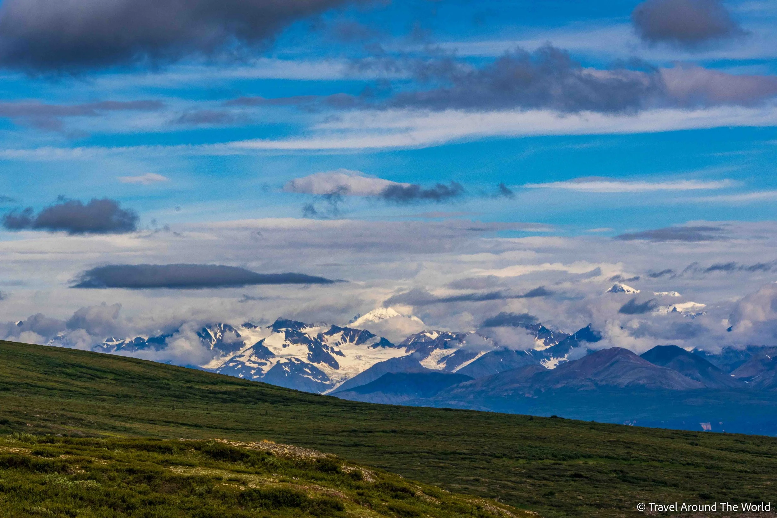 Gleich nach dem ersten Stopp im Denali National Park stellt sich uns die Frage: Sollen wir zuerst weiter ins südlich vom Park gelegene Talkeetna fahren, um uns dort den langgehegten Traum eines Rundflugs um den Denali zu erfüllen oder doch lieber «quer rüber» via Denali Highway in den östlichen Teil Alaskas fahren? Die Wetterprognosen sehen nicht allzu vielversprechend aus und für den Rundflug brauchen wir einen perfekten Tag. Der Denali ist häufig von einer Wolkendecke umgeben: An gerade mal zwei Tagen pro Monat hat man schätzungsweise einen freien Blick auf den gesamten Berg. Wir hatten bereits das Glück, den Denali in seiner vollen Pracht beim Wandern im Park bestaunen zu können. Für die kommenden Tage sieht es jedoch nicht gut aus. Unsere Wahl fällt demnach auf den Denali Highway.