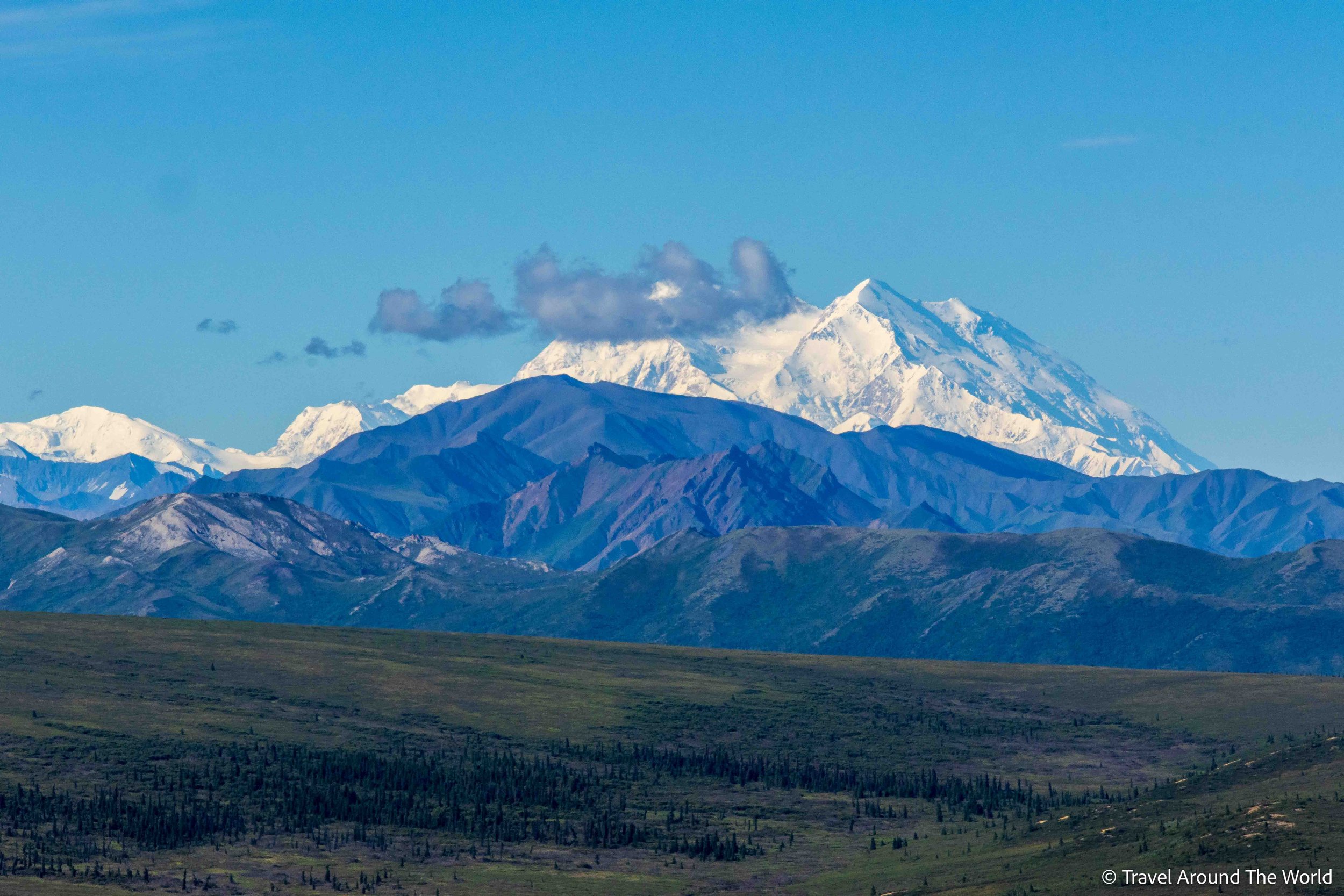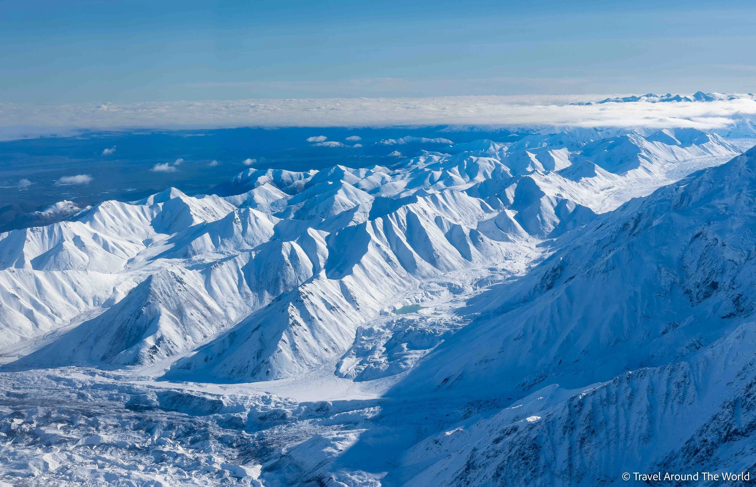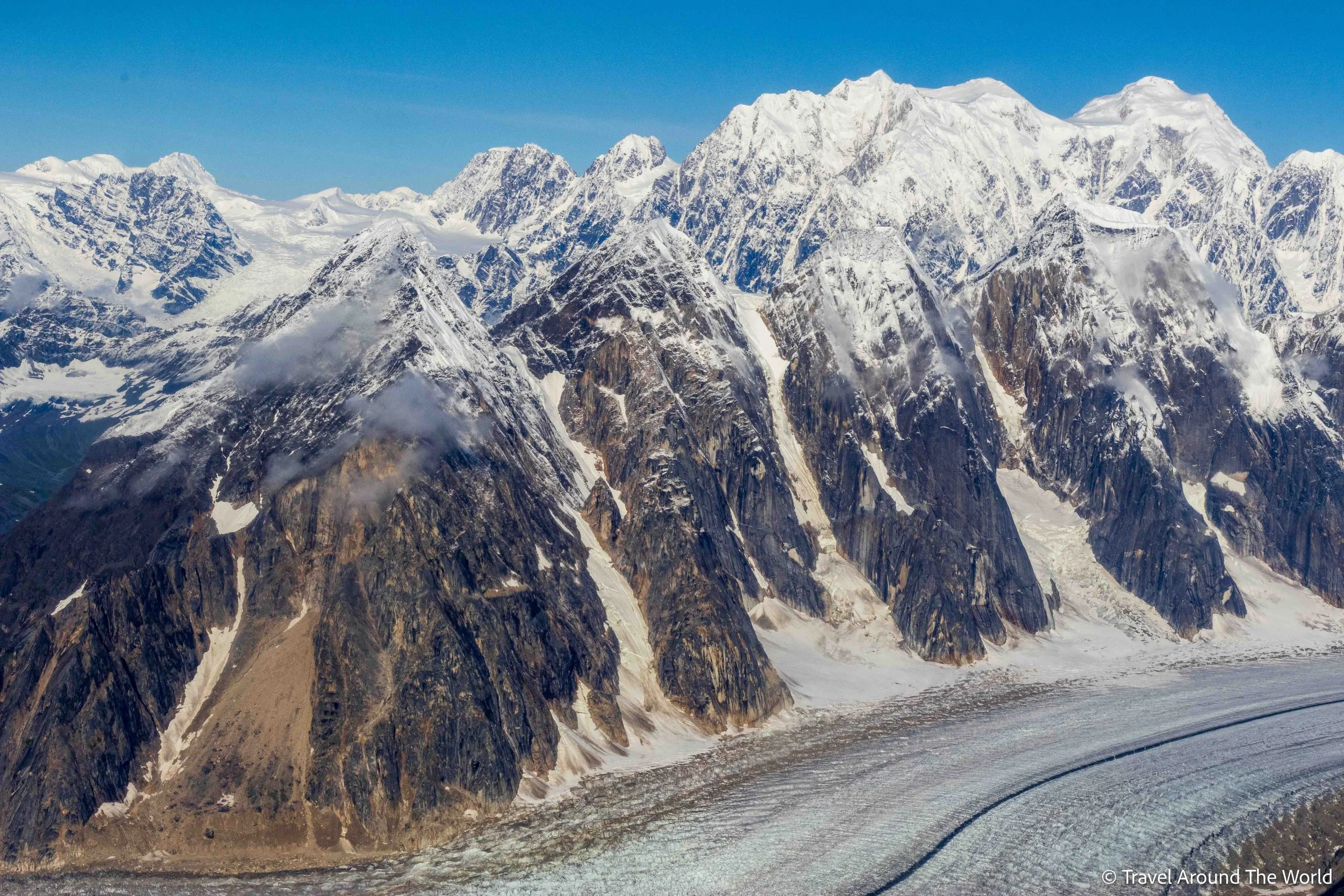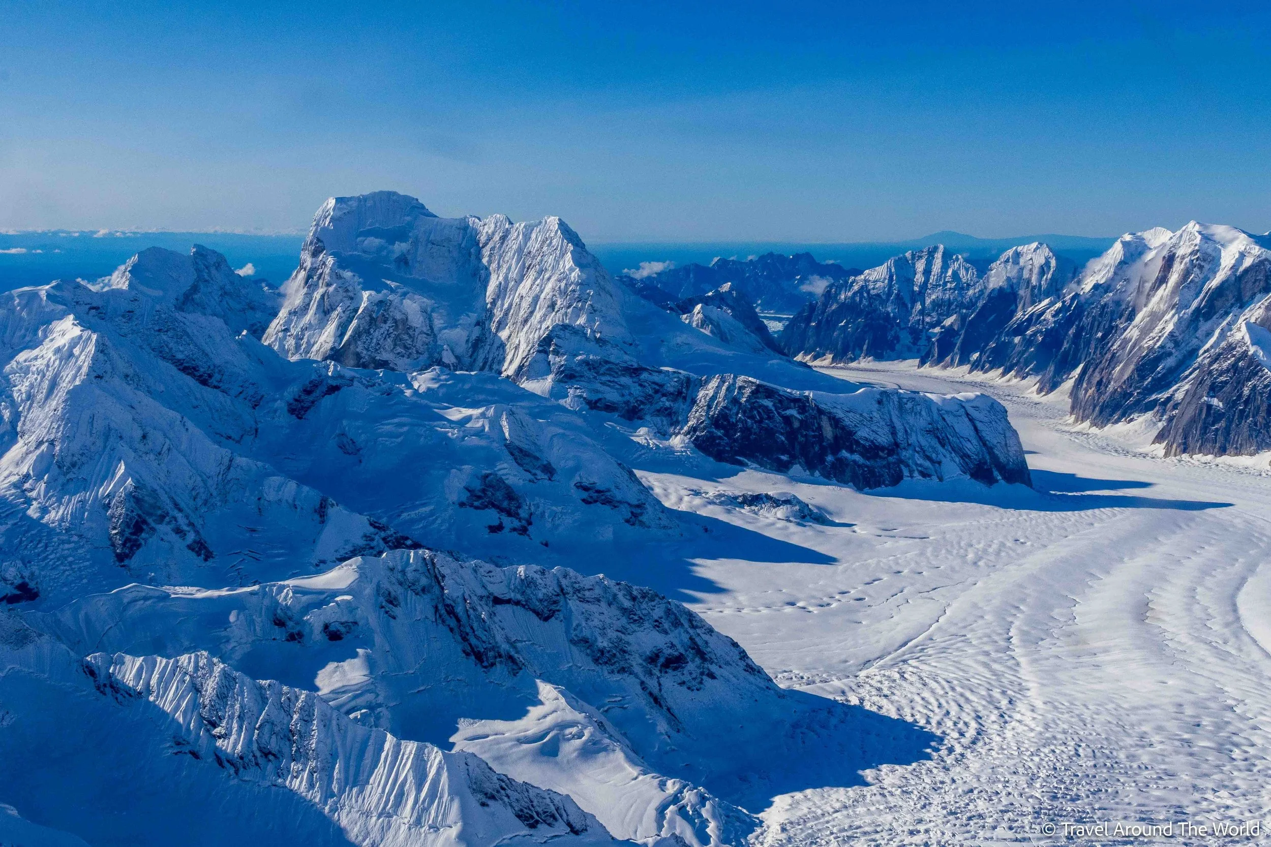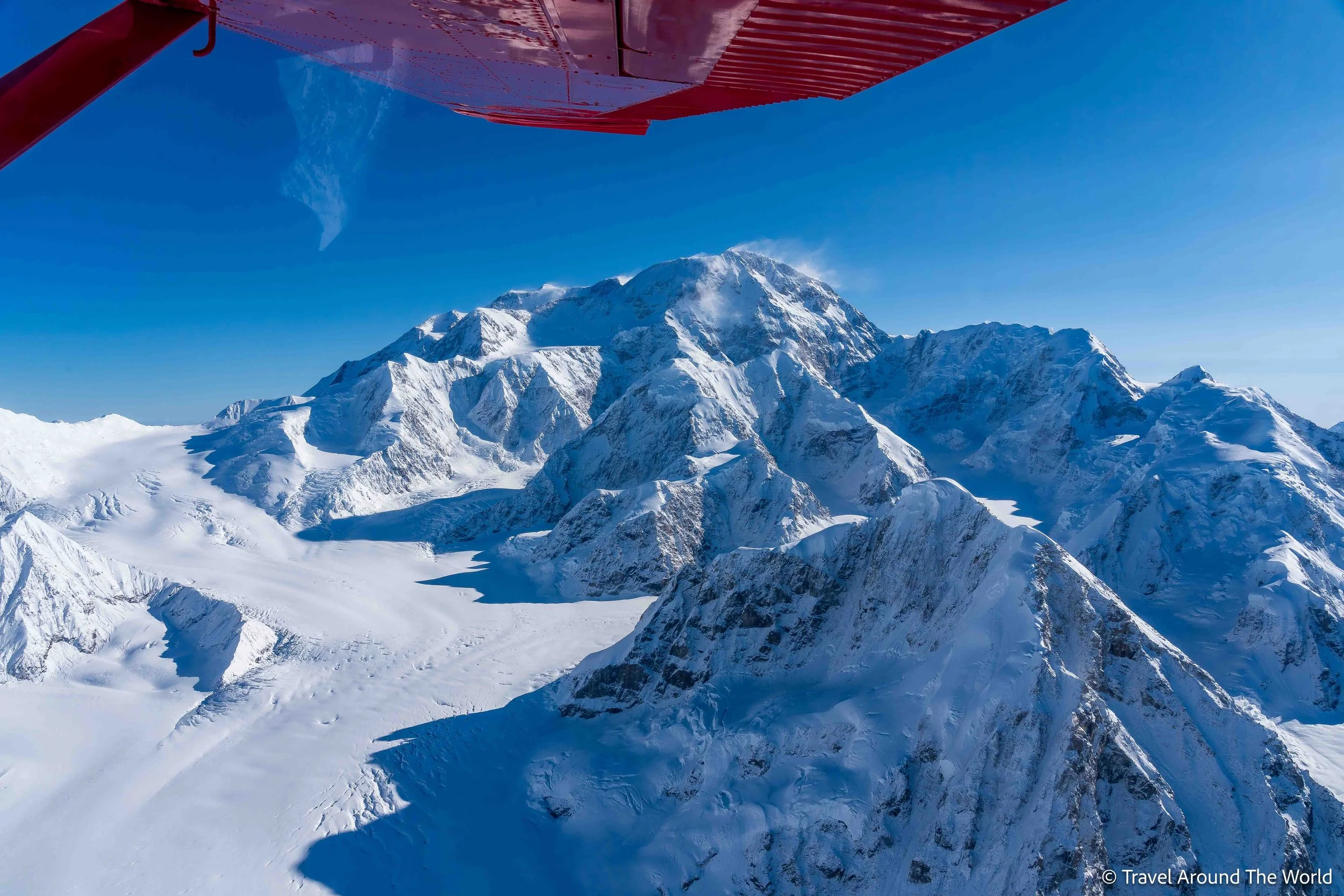 Die Wetterapps weiterhin gut im Blick, geniessen wir ein paar trockene, wenn auch bewölkte Wandertage in Hatcher Pass. Wir sind auf der Lauer und schlagen dann zu: Das Wetter verspricht erneut richtig gut zu werden. Wir warten noch ein wenig ab mit der Buchung, machen uns aber vorsorglich schon mal auf den Weg nach Talkeetna. Nur einen Tag im Voraus buchen wir dann den Denali-Rundflug. Wie beim Eisklettern erwischen wir einen perfekten Tag. Besser hätten wir den Denali und all die umliegenden Gletscher und Gipfel nicht zu Gesicht bekommen können. Absolut phänomenal! Nicht zu vergessen: Obwohl wir in der absoluten Hochsaison unterwegs sind, ist es kein Problem, ein Highlight wie diesen Rundflug nur einen Tag im Voraus zu buchen. Den vielen Anbietern, verschiedenen Flugrouten und häufigen Abflügen sei Dank.