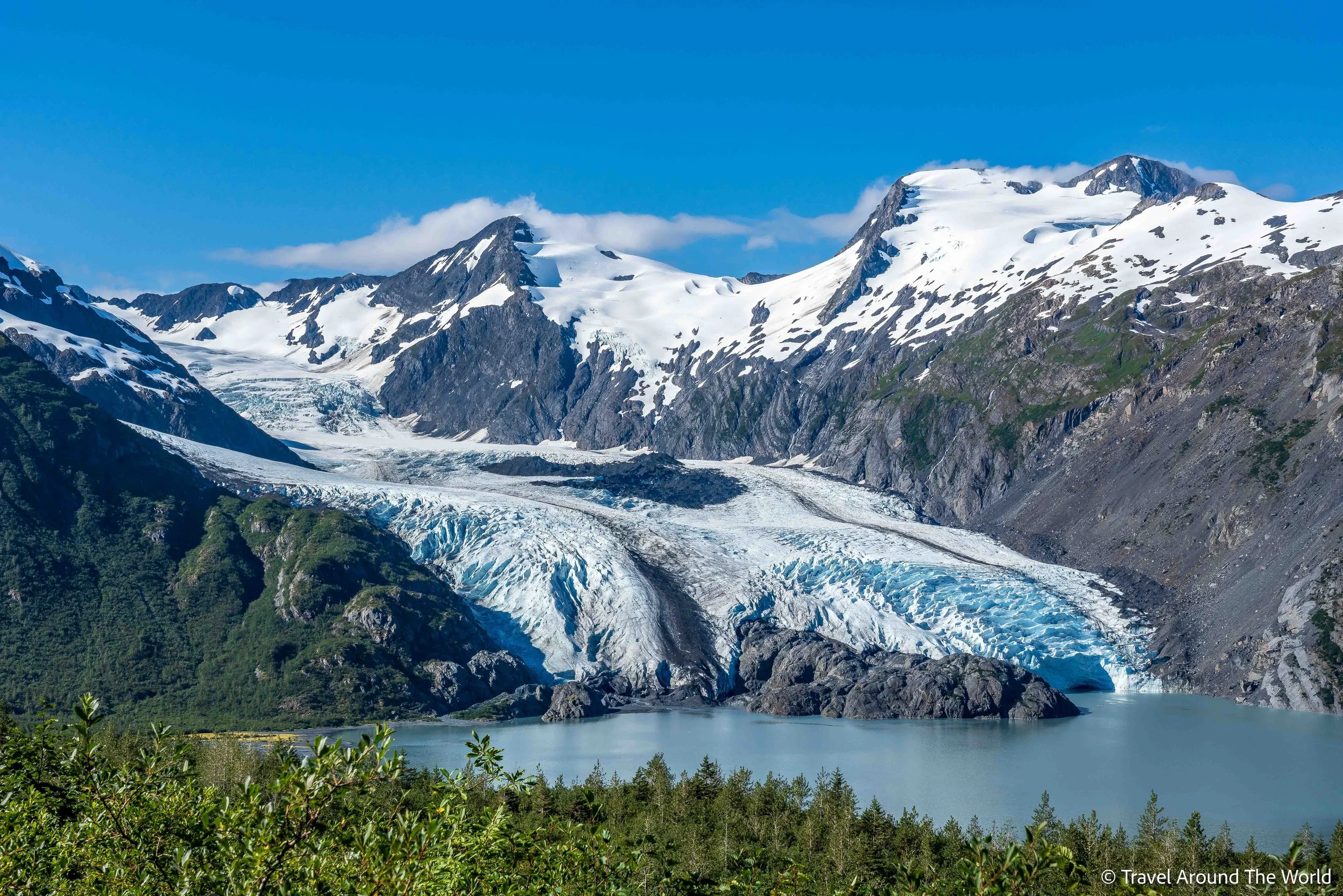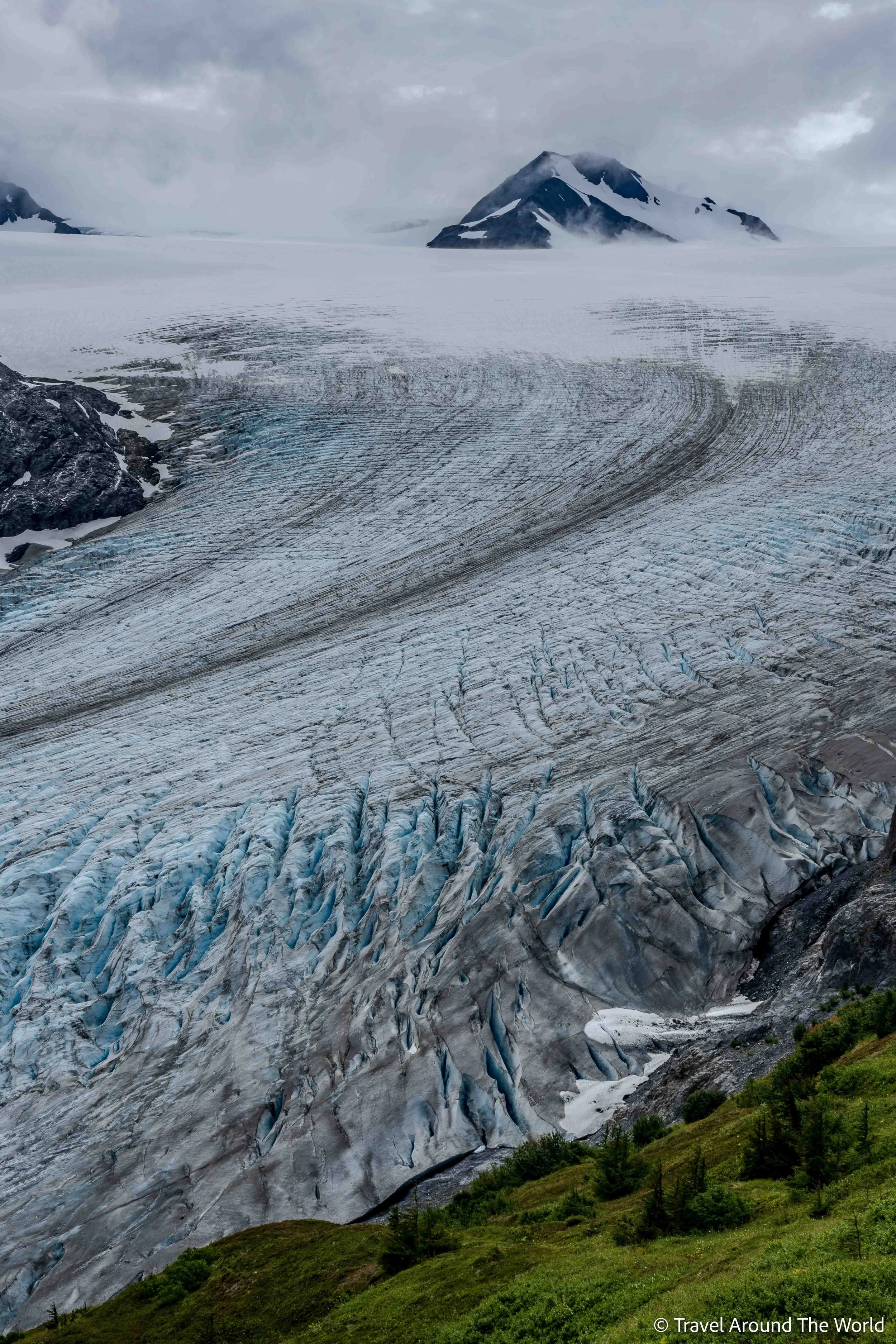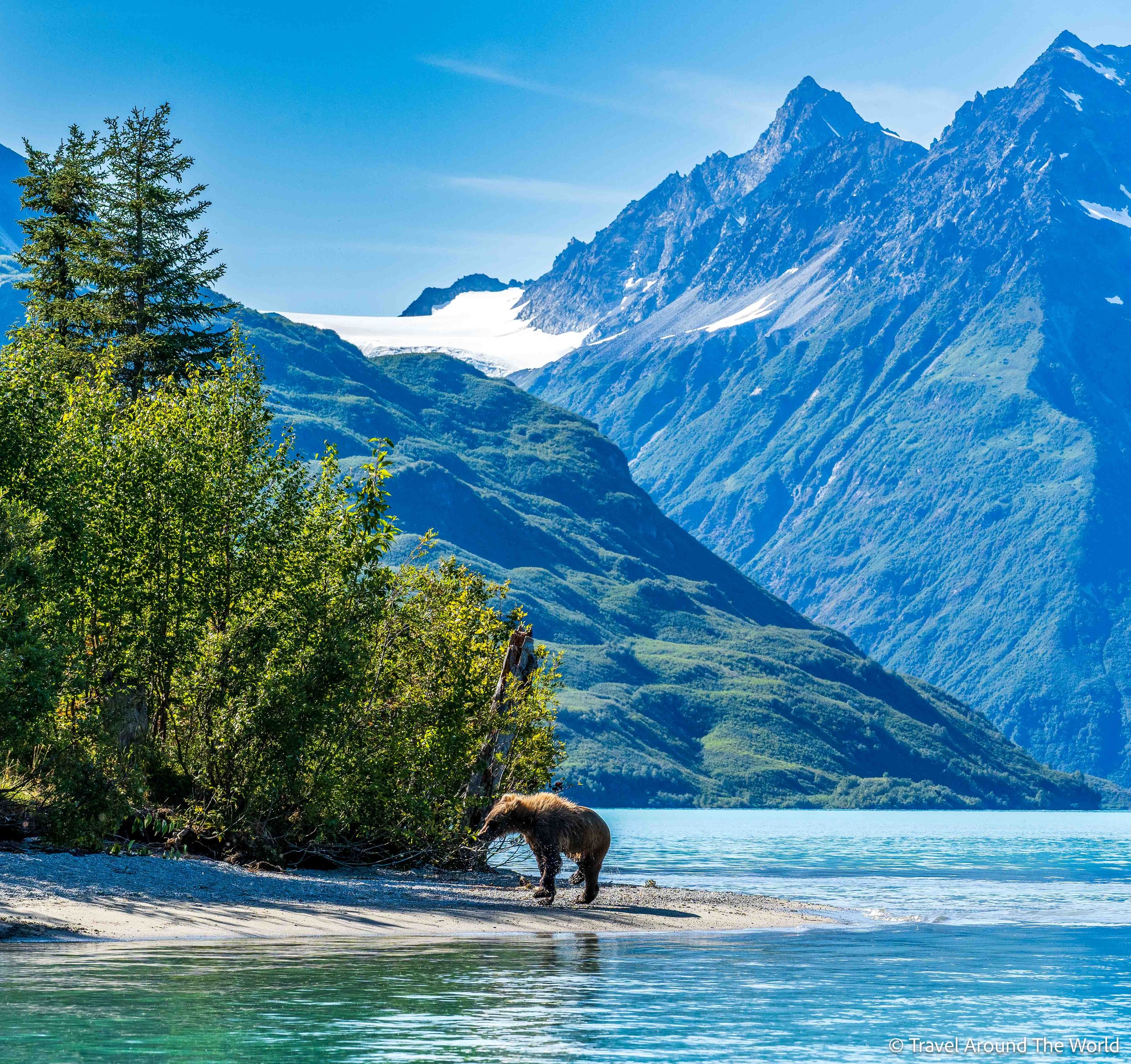 Nun führt unsere Route wieder südwärts. Wir wollen einige Zeit auf der Kenai-Halbinsel verbringen. Erneut nutzen wir unsere mittlerweile bewährte Strategie: (teure) Touren und Highlights an den besten Tagen buchen, Wandern, wenn einigermassen trockenes Wetter angesagt ist und Pausentage an den «nassen» Tagen einlegen. Wieder geht der Plan auf: perfekte Bedingungen am Crescent Lake für die Bärenbeobachtungstour, ebenso auf der Bootstour im Kenai Fjords National Park (zwar nicht sonnig, dafür – viel wichtiger – mit einer ruhigen See). Einige wunderschöne Wanderungen, die wir alle trockenen Fusses wieder nach Hause schaffen. Für die Aussicht über das Harding Icefield hätten wir uns zwar eine etwas bessere Sicht gewünscht – aber hey, alles kann man nun wirklich nicht haben.