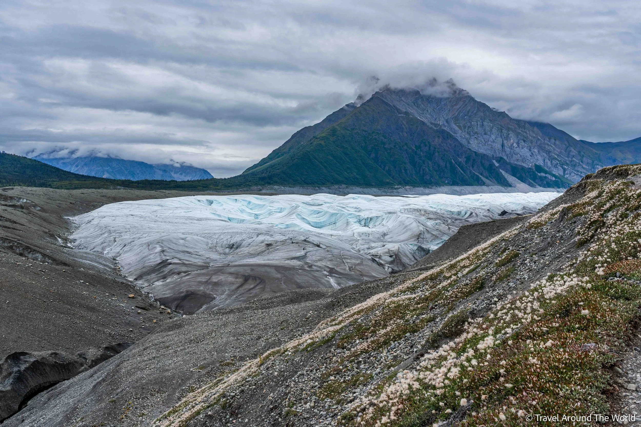 Bei Paxson, wo der Denali Highway in den Richardson Highway mündet, ist die Richtung klar: Wir müssen nach Süden. Doch schon eineinhalb Stunden später müssen wir uns erneut entscheiden: Sollen wir den Glenn Highway in Richtung Anchorage nehmen oder unsere Fahrt weiter nach Süden (entweder nach Valdez oder den Wrangell-St. Elias National Park) fortsetzen? Auch hier nimmt uns die Wettervorhersage die Entscheidung ab. Für den vor einer Woche gebuchten und bis 48-Stunden vor Tourbeginn gratis stornierbaren Eiskletter-Ausflug auf dem Matanuska Glacier wird ein durchgehend sonniger und warmer Tag angekündigt. Wir sind bereit für dieses Abenteuer und biegen somit auf den Glenn Highway ab!