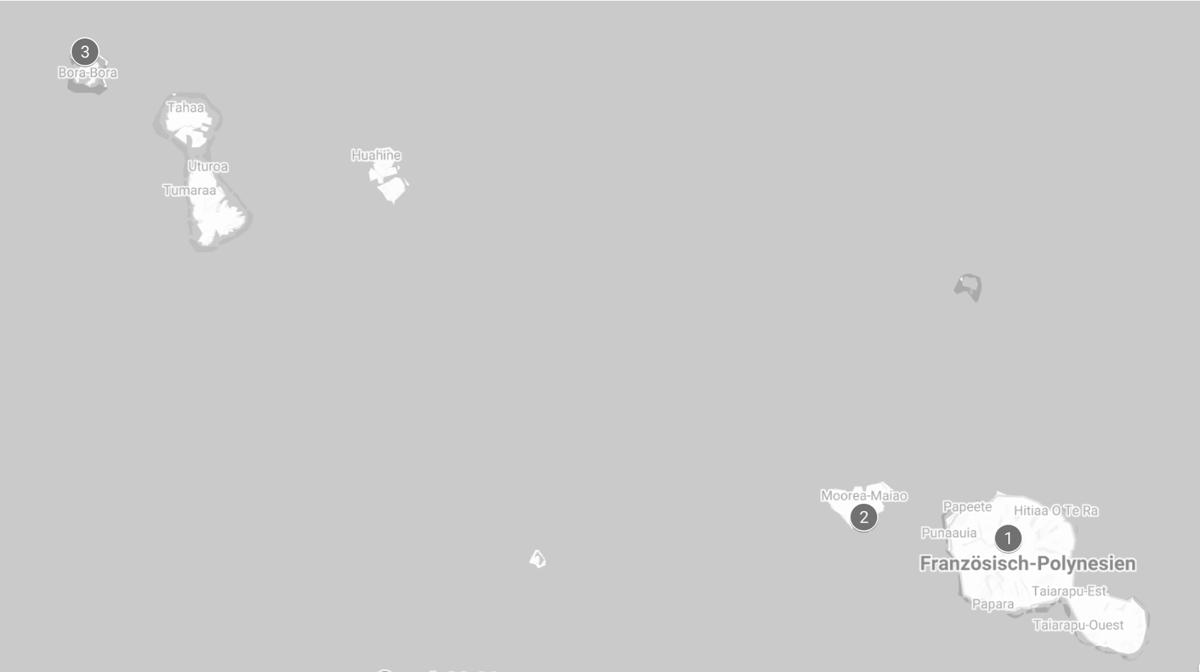 Nachdem wir in Australien und Neuseeland viel unterwegs waren und weite Strecken gefahren sind, gönnen wir uns nun ein paar entspannte Tage in der Südsee. Wir haben uns für französisch Polynesien entschieden. Um genau zu sein: für die drei Inseln Tahiti, Moorea und Bora Bora.