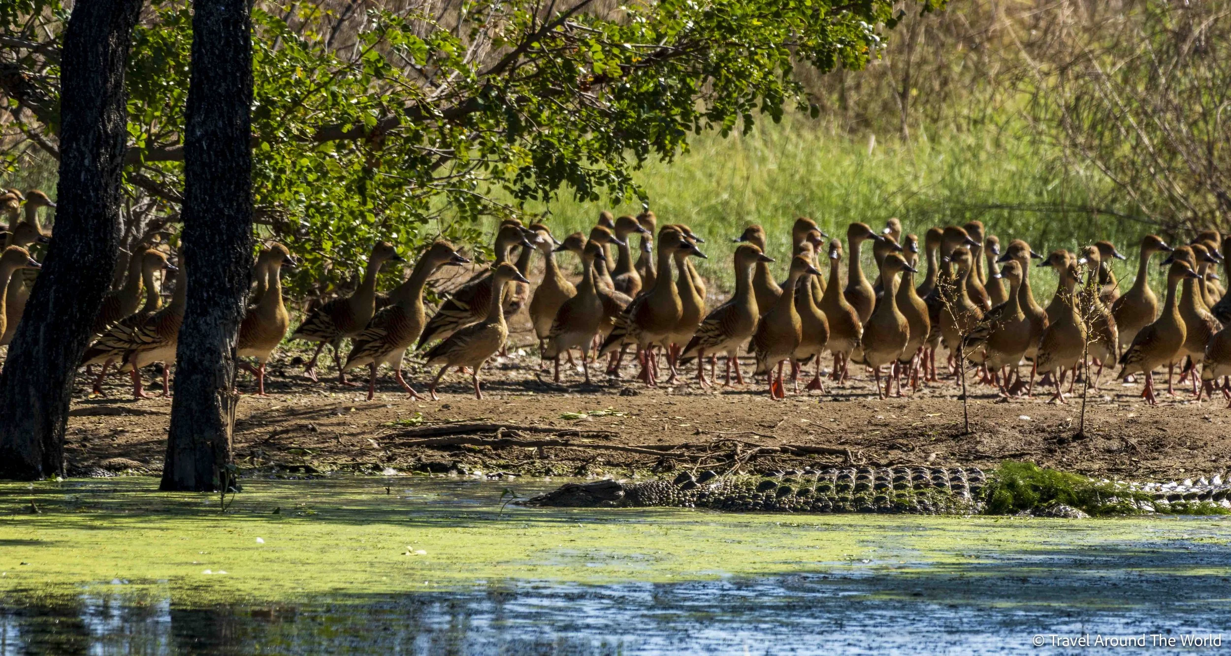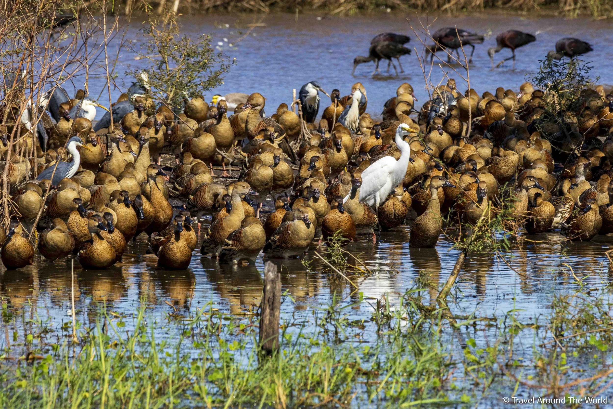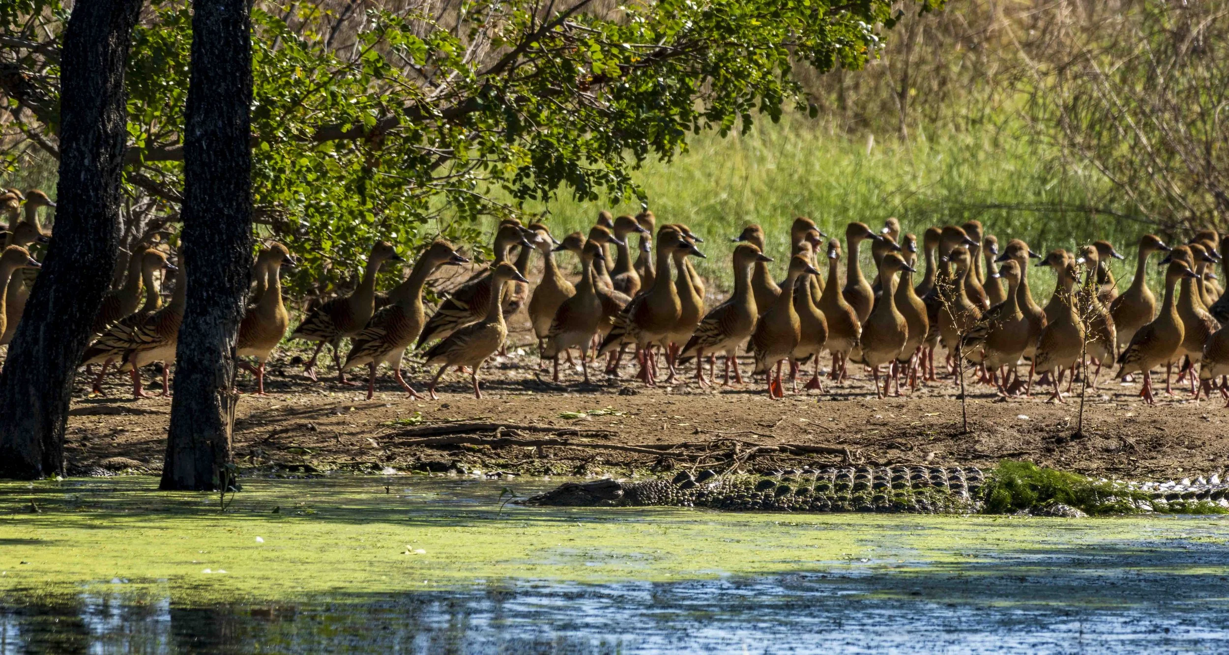 Vogelschwarm beim Marlgu Billabong Bird Sanctuary