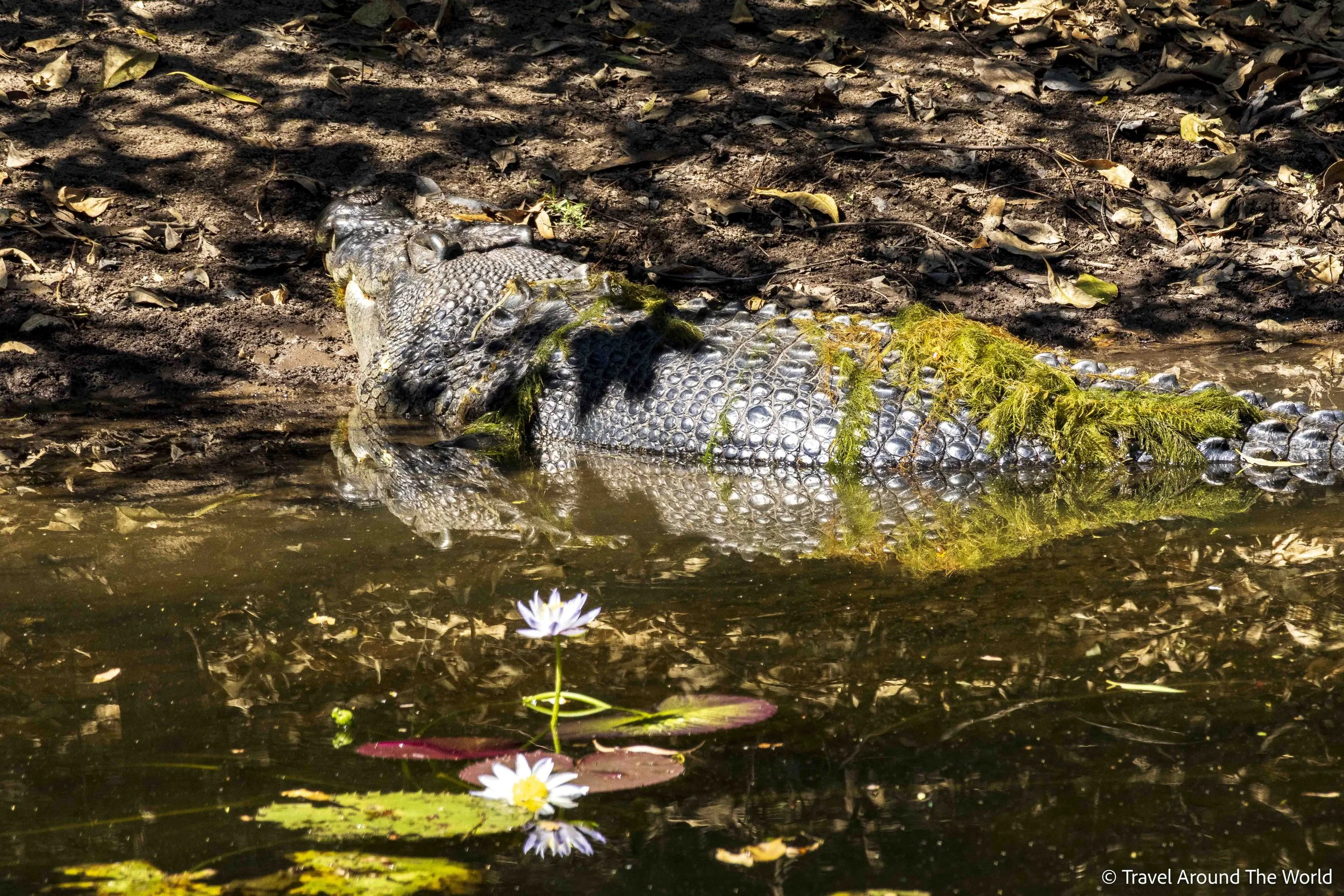 Salzwasserkrokodil im Marlgu Billabong Bird Sanctuary